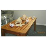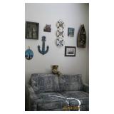 This lovely two bedroom/2 bath home in the Trilogy Community offers many items. Sofas, chairs, tables and a 42" television. There is a king size bedroom suite as well as a double bed with dressers and night tables. There is a dining set and serving/warmer table, small kitchen appliances, dishes and serving pieces galore. There are two patio sets and many outdoor furnishings. The garage is a treasure chest of seasonal decor and tools. Come on out...there's something for everyone. |