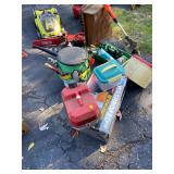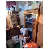 Furniture: Oak trim upholstered sofa, Upholstered rocker/recliner chair, Oak Rocker, Round Oak claw foot table with 4 chairs, Oak 3 drawer/3 cupboard Sideboard with glass door hutch, Oak quilt rack, Mahogany drop leaf table, Oak storage bench with 2 drawers, Mahogany desk, Light oak twin bed with mattress & box springs, 3 Drawer Pine dresser, Oak desk with hutch, 6 Drawer Pine dresser, Oak book cases, Full sz oak bed with Beauty rest mattress & box springs, matching 2 drawer night stand, 5 drawer dresser with mirror, 5 drawer dresser, Wooden 2 door storage cabinet, wooden bookcase storage unit, Cherry entertainment cabinet with Philco 3 speed record player & AM /FM radio, Oak table with tile top table & 4 chairs, Oak lamp table, Vintage Childs high chair, Vintage Firestone side table with storage, 1 drawer pine night stand, Decretive Ice Box, Oak Pie Saver, Wooden 2 door storage cabinet and more… Kitchen: Vintage Cookie Jars, Yellow Federal glass, Enamel ware, Service for 12 plus serving set Camelot American Rose china, Iron lamb mold, Royal Kent (Poland) service for 8 china, Metal lamb mold, Brookpark bowl, Pyrex, Tupperware, Crock, Hull, Hall, Currier & Ives service for 4 set, Vintage Medicine bottles, Fenton, MarCrest , U S A Mugs, U S A bowls, Jim Shore Figurines, Pink Fenton, Depression glass refrigerator storage dish, Yellow Federal glass , Prussian, Czechoslovakian, Carnival ware, Royal crock pot, U S A Pig cookie jar, and much more.. Household: Hurricane lamp, Vintage oil lamps, Wrought iron plan stands, Vintage Floor lamp, Quilts, Quilt Bed Sets, Vintage Table lamps, Wall décor, Pictures, Mirrors, Mirror/picture wall clock, Baskets, Luggage, Linens, 4 drawer metal file, 4 folding chairs, Metal side table, Homes Window Air Conditioner, Puzzles, Games, CDs, DVDs, VHS tapes, Video tapes, Oak CD storage case, Christmas items, Medical items Material, Quilt squares/ blocks & batting, Sewing items, , Childs wooden turtle seat, large Fluffy lamb, G E telephone-clock am/fm radio, Pillows, Afghans, American Tourister luggage and, more… Electronics: Magnavox surround Sound Stereo with speakers, Logitech S120 Stereo speakers, Epson Expression Premium XP 600 CD/DVD copier HI FI, RCA Converter Box, Panasonic 4 head Hi Fi stereo Omnivision, Staples Monitor, and more… Appliances: Kenmore Ultra Fabric Care Dryer, Mr Coffee, George Forman Grill, Osterizer Marquis Blender, Betty Crocker wide slot toaster, Westbend Electric skillet, Hamilton Beach Easy Reach Toaster Oven, Bissell Powerforse Turbo vacuum, Red Stone infrared cabinet heater, Touch Point Ceramic heater, Red Stone fan forced Quartz heater, Turbo Perfect sweeper, Bissell Whisk it, Bissell Pet pro vacuum, Kenmore Powermate 120 amp vacuum, , Honeywell vaporizer, Kenmore 12 stitch Sewing machine in cabinet, Singer Simple portable sewing machine in case, Holmes oscillating floor fan, , Comfortcell Treadmill, Perfect air machine and more… Yard Ornament Décor: Cast Iron table with 2 matching chairs, Wooden Table with Umbrella, Plastic Adirondack chairs, Folding chairs, Flower pots large& small, Cement urns, Cement Animal figures, Urns with living plant, Trellises, Metal Arbor, Shepherds hook pot holders, Stepping stones, Glider, Lawn lamps, and more…. Garage: 2 Cast Iron wood burning stoves, Simplicity Tractor, Ryobi Lithium 40 V mower, Homelite Chain saw, Poulan Pro 450E mower, Mr Heater Big Buddy, Porter Cable 150 PSI, Black & Decker 20v blower, Black & Decker Weed Whacker, Snow Joe cordless snow blower, Earthwise 8.5 amp Tiller/Cultivator, Craftsman tool chests with locks, Lawn boy leaf shredder attachment, Agra fab seeder, Turf builder seeder, Holmes fan, Tool boxes, Tools, Car jacks, Car ramps, Chains, Ladder, Axes, Seasonal Yard tools, Extension cords, Vintage pitch fork, Chimney Brush, Bags of red wood chips, Wheel barrow, Wooden Pepsi & Crush boxes, Wooden wagon, Saw Horses, Work benches and more… |