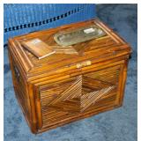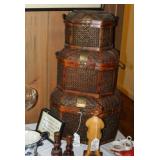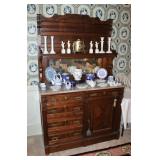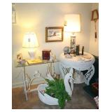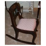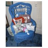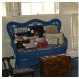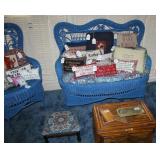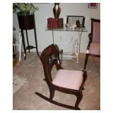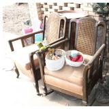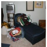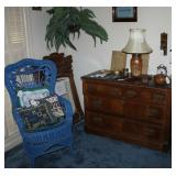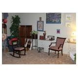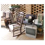 FURNITURE: One of the most beautiful antique beds we've ever sold with mirrored armoire and marble topped side tables, several antique rocking chairs, vintage wicker furniture, rugs, antique armoire, vintage sectional couch, matching chaise lounge & club chair, small antique tables, Baby Grand Piano, mirrors, baker's racks, etc.