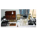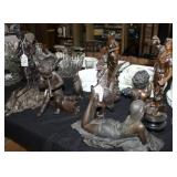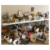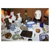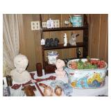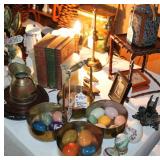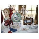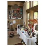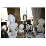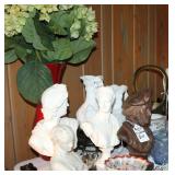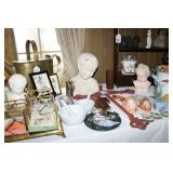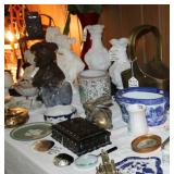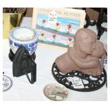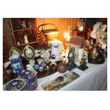 MISCELLANEOUS: Opera glasses, bronze statues & figurines, classic Santini Figure Balestrog-1767 (signed), books, cookbooks, vinyl records, linens, vintage Christmas items, bunnies galore, several busts, wall shelves, artwork, sheet music & books, Tulane & Baylor memorabilia, etc.