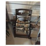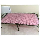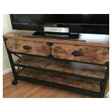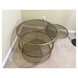 Other furniture including vintage entertainment center, vintage large gold & glass coffee table, oversized heavy duty cot