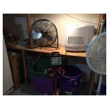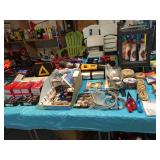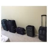 Framed art, decorative items, a lot of luggage & computer bags, linens, sleeping bags
