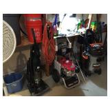 Garage items ALL in like-new condition including Ridgid vacuum 6.5 hp 16 gallon, Rubbermaid yard cart, Black & Decker electric mower, HomeLite pressure washer, Black & Decker electric trimmer, Black & Decker hedge trimmer, Toro electric blower, Porter Cable electric drill, Milwaukee drill set, Campbell Hausfield compressor, Northern Industrial hand truck, Cosco 3-step ladder, Cosco expandable ladder, Loading Zone adjustable cargo gate for vehicle, Porter Cable drill/driver set, DeWalt drill set, Stanley screw driver set.....more!