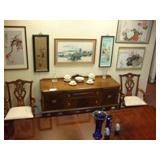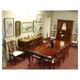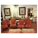 | ESTATE SALE FRIDAY & SATURDAY JUNE 19th & 20th 8:00 a.m. - 4:00 p.m. BEAUTIFUL MAHOGANY DINING TABLE WITH 8 CHIPPENDALE STYLE CHAIRS. SOFA WITH 2 LOVE SEATS IN CHENILLE, END TABLES, LAMPS, BAR STOOLS, PEDESTALS. LOTS OF FRAMED DESIGNER ART PRINTS, CHANDELIER. ACCESSORIES OF ASIAN INFLUENCE - JADE TREES, CLOISONNE, SILK EMBROIDERY WALL HANGINGS, CARVINGS, VASES. TABLE LINENS, JEWELRY (REAL & COSTUME), CLOTHING, & HOUSEWARES. |
