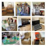 Small, smoke and pet-free apartment sale in a senior living apartment complex. Items include some kitchen, 55" LG TV, men's clothing, dining table/chair, leather sofa and loveseat, several recliners, WOW computer, books, and bedroom set.