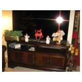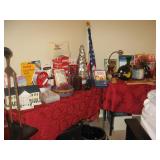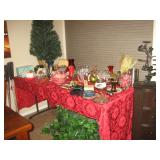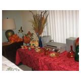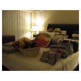 To Highlight - King bedroom set which includes a headborad/footboard bed frame with two large built-in drawers, dresser, two night stands and a beautiful king mattress; upholstered chairs; Television entertainment cabinet; Leather sofa and matching love seat; Two end tables; wood dining room table set with four chairs; lighted, curved-glass curio cabinet; Two rattan patio loungers; Rattan chair/table sets; Homecrest glider with matching chairs and ottomans; BBQ grill; Thanksgiving and Christmas decor; Books; Pool floaters; blow-up boat; Golf caddy; Golf clubs; Knife collection; Kachinas; Canvas art; Entrance table and mirror; Lamps, Record player; Stereo; Many holiday gift giving ideas and much household items. |