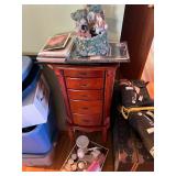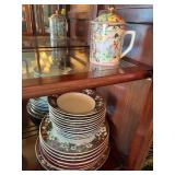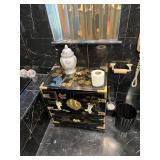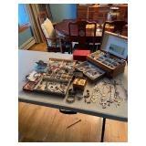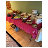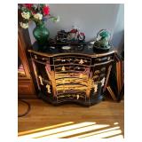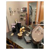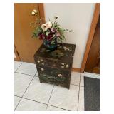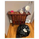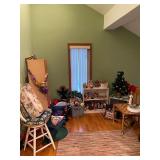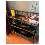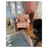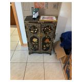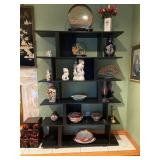 Please bring your own bags Thank you Loaded with Asian themed furniture and collectibles, Asian etagere, chests, 6 panel screen, desk & more, curios, leather sectional, carved end table, pair of modern chairs, rattan shelf, tufted white chair & ottoman, pair of violet, pink striped arm chairs, jewelry chest, collectible bric-a-brac, rugs, art, books, tool chest, hand & power tools & assorted garage items & loads more to uncover! |