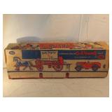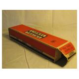 Auction Sale of Lionel Trains, Marx and other Vintage Toys This will be a auction you don't want to miss! DATE AND LOCATION TO BE ANNOUNCED!! Listing over 300 pieces of Lionel Trains, Marx trains, and other vintage toys. Lionel Train Accessories: Testle bridge with box #317, Transformer with box and operating manual #ZW 174, Transformer with box w/o operating manual #1033, Transformer with box with operating manual Type S, Remote Control "027" switches with box 1 pr. 1122, Vintage railroad tunnel 1950's. Automatic block signal #153-3, Louis Marx: Vintage marx scenic tin litho metal tunnel, whistling Station Girard with box, Revolving beacon tower with box #0446, Twin light crossing flasher with box #423, Bell ringing crossing signal with box #418, 8 brown plastic power lines. Lionel Train: Locomotive with smoke chamber with box 027 #2026 1948-1953, Hopper car with box #64361, Hopper car with box #6456, transformer car with box red and gray #2461, tank car with box #6555, tank car with box #6465, wrecking car with box #2419, Gondola with box #6462, Whistle tender with box #6466WS, caboose circle L lettering with box #6257-25 (1953/55), box only of semaphore #151, box only of 1955 outfit, Burlington diesel with box #2328-17, 90 degree crossover with box #1021, 2 ea. remote control uncouplers with box and instructions #6019, lock ons/track and wire connectors, Lionel track 69 total pcs., American Flyer: track 26pc., Locomotive and tender with box #290 inc. label from AC Gilbert Co. 1950, cattle car with box #629, cattle car #639, caboose #638, transformer with box 75 watts, American Flyer instruction manuel 316" 1949, Hopper pa9970-#640, uncoupler with push button switch with box #706, control switch track XA-9926 and XA 9927, switch control box, AF train box only #4909-T, Mattel: 1963 Barbie and Ken 100pc. jigsaw puzzle #4604, 1962 Barbie dream house with furniture. Childrens furniture: Red and white vinyl rocker 1950's, vintage 1950's bucking bronco cowboy western childs rocking chair, painted wooded rocking chair, highback wooden rocking chair, 1950's folding red and white table and one chair, 1950's antique white wooden crib with spring bottom, vintage folding wooden potty chair with tray. Games: Cootie 1949, Triple combo game set 1960's, Etch-A-Sketch #505, Golf course game #444, Horse racing game #7958, Clue game 1956, Twister game #4645 1950's horse statues, 1950 Linmar tin litho batter Japan sleeping baby bear with orginal box, 1960's Fisher Price TV-radio 10 Little Indians # 159, 1950's Frosty Freeze ice creamer, 1950's burn right leather craft set with box,. # 5455, Kay-AnEE Sew Master-made in Germany, Tom Thumb typerwriter #1406, Harmonica made in Germany #A440, miniture camera, Wilson fielders glove #GC1289, Roy Rogers fix-it wagon box only, Halloween masks, Green felt pennant, football helmet and shoulder pads 1950's-S-03, vintage plastic horse, paper cat, miniature metal locomotive, official Cub Scout uniform-1950's with patches, Cub Scout scarf with wolf gray slide, belt with buckle, vintage tin Marx colonial doll house-2 story-breezeway with furniture, vintage 50's-60's metal wind up jump rope toy, vintage childs Amoco metal red and white wheel barrel, vintage Gong Bell co. USA rolling ride on horse sleigh-reins and metal wheels, 1950's rocking doll crib, 1950's Emenee accordion toy, 1961 Stombecker model speed car kit #D-51-149, 1961 Aurora model Ferrari sportster kit 514-49, 1961 Aurora kit box only with pieces #51439, 1960's monogram 1930's model A Ford Phaeton PC64-198, 1956 Aurora British Spit Fire airplane kit #20-69, 1950's Aurora SSN-585 Skip Jack Atomic Sub #771-98. 1960's Strombecker lap counter with box #9730, 1940's-1950's Structo flat bed tow truck, 1950's Lumar Marx green army truck #5417314?, 1940-1950's Wyandotte press steal and plastic wrecker with cardboard dash, vintage rare Follow-Me-Jeep, 1950's Wyandotte Greyvan Lines deluxe long distance moving trailer, 1950's Alps helicopter S-55 Sikorksy, 1950's tin car, vintage Austin Healy sports car, vintage Thunderbird model car-plastic, vintage Ford Comet 1960's model car painted-plastic, 1950's Nomura toys Tn Century hotrod friction car, 1960's orginal vintage Structo Toy Steam shovel blue construction complete, 1940's Murray petal fire truck and more to be added. Pictures on auctionzip.com #6270 |