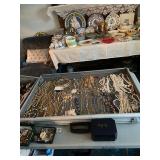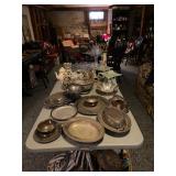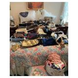 Please bring your own bags Thank you House is loaded with costume jewelry, larger sized clothes, furs, gowns, lots of shoes, clothes, bags, hats, perfume, lots of beauty products, colored glass, Christmas & more holiday items, linens, luggage, boxed and more kitware, Hummel’s, books, games, mahogany dining room table, chairs & china closet, cedar chest, round dinette, bakers rack, master bedroom set, assorted dressers, mirrors, lamps, tables, pair of tufted swivel chairs, white wicker patio furniture, spoon collection, linens, art, collectible bric-a-brac & more! |