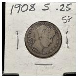 1908-S BARBER SILVER QUARTER |