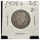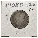 1908-D BARBER SILVER QUARTER |