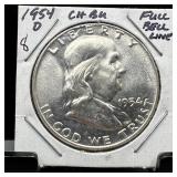 1954-D FRANKLIN SILVER HALF DOLLAR FULL BELL LINES |