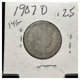 1907-D BARBER SILVER QUARTER |
