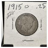 1915-O BARBER SILVER QUARTE R |