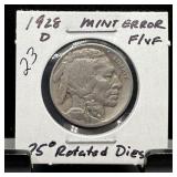 1928-D BUFFALO NICKEL STRONG ROTATED DIE |