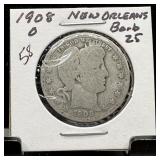 1908-O BARBER SILVER QUARTER |