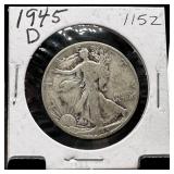1945 WALKING LIBERTY SILVER HALF DOLLAR HIGH GRADE |