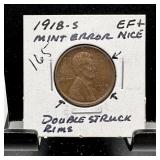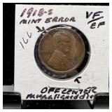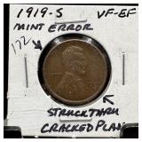 1919 WHEAT PENNY CENT MINT ERROR STRUCK THRU |