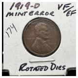 1919-D WHEAT PENNY CENT ROTATED DIES |