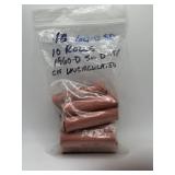LOT OF 10 ROLLS 1960-D SM DATE UNC MEMORIAL CENTS |