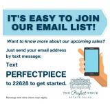 Looking to move? Hire us for the PERFECT combination for all your moving needs! Team up with The Perfect Piece to: LIST your home... SELL the contents... arrange for DONATIONS... and CLOSE the deal! Call today for a FREE consult and let me save you thousands of $$$! 770-614-1411/ 404-234-1733 _____________________________________ Join us for another great sale in Braselton! Sale includes: Living room furniture Bedroom furniture Artwork Mirrors Wall decor Accent chairs/ Tables Accessories Lamps Bedding/ Linens Theater chairs Marilyn Monroe Collection Bar Barware Kitchenware Tools Weights Record player Grill Office furniture Outdoor furniture and much more! As always, thank you for your continued support! Robin and The Perfect Piece Team |