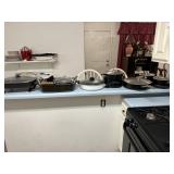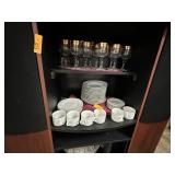 LARGE LOT OF KITCHEN DISHES / ETC CABINET ETC |