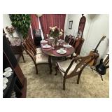 LARGE LOT OF CHINA & GLASSWARE IN CABINET ON TABLE |