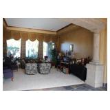 You may also expect a very grand furniture which fits very well within these 18ft ceilings, with a majestic Master Bedroom four post King bed on platform, with matching marble top nightstands, chest of drawers and a dresser with mirror. There is another bedroom set - Queen size in the guest bedroom - which also includes a matching dresser, chest and nightstands. There are quite a few oversized L-shaped sofas spread out throughout the house, as well as different accent chaird and recliners, that will be available for sale.