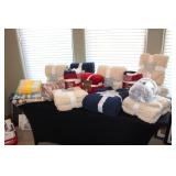 - Plenty of brand new blankets, linens, towels