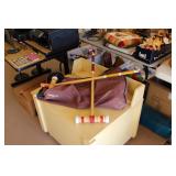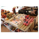 The garage has some selection of tools available, as well as a number of 55-gallon water barrel containers, a like new large 16 cubic feet upright frost free freezer by Frigidaire. There are tons of season and holiday decorations here with mutliple nativity sets, Easter decor and egg hunt supplies and crafts, tons of picnic supplies, plastic flatware, tubs of new napkins and paper plates, St. Patrick's Day decorations, Halloween pumpkins, numerous costumes, camping supplies, different strength flashlights, sleeping bags, coolers and a tent. The patio will also have plenty of folding chairs, some folding tables as well as full size picnic tables for sale, along with a great number of artificial plants, and beautiful artificial Poinsettias in medium and large size.