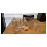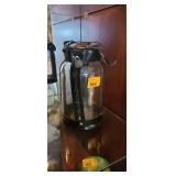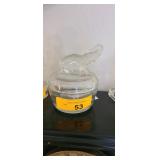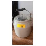 ANTIQUE FOOD STORAGE CROCK W HANDLE, GLASS LID |