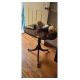 VINTAGE WOOD SIDE TABLE WITH CASTERS |