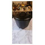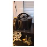 LARGE ANTIQUE BROWN GLAZE CROCK JAR W LID |