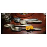 VINTAGE BOHEMIA CZECH GLASS SALT CELLARS W SPOONS |