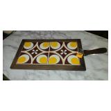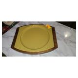 MCM GREEN ENAMEL & TEAK FONDUE SET W BOOK & FORKS |