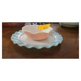 HAZEL ATLAS PASTEL: PINK BOWL & PASTEL BLUE PLATE |