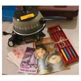 MCM OSTER ELECTRIC FONDUE POT, FORKS & BOOK |