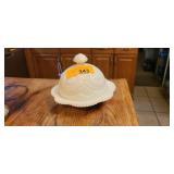 VINTAGE SAW TOOTH MILK GLASS ROUND BUTTER DISH |