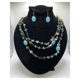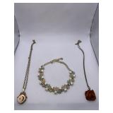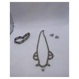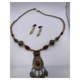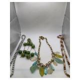 STONE & BEAD NECKLACE & CLIP ON EARRING LOT |