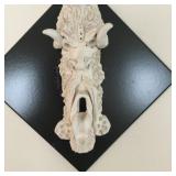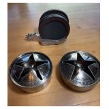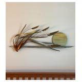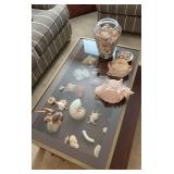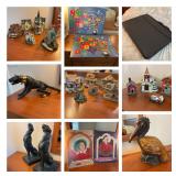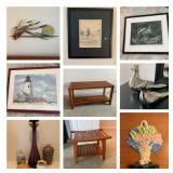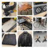Very masculine-oriented sale. Items include lots of brass, surfboard, pressure washer, car amps/speaker, art, stones and crystals, CDs and DVDs, stunning teak root console table, and driftwood eagle.