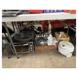 LARGE LOT OF KITCHEN / POTS PANS / SM APPLIANCES |