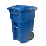 Made with advanced rotational molding, Toter cans are built for toughness and maximum impact resistance. Toter cans are flexible with a 360-degree rotating steel stop bar to bounce back from trash day, every day. Rugged Rim technology and reinforced material in critical wear areas add rigidity and extend service life. Ideal handle height and best-in-class ergonomics provide easier maneuverability. The lid is securely attached to keep the contents inside. Quiet-cap wheels reduce noise when moving cans. Solid vibrant colors keep your cart looking new for years. Universal design compatible with automated and semi-automated Curbside collection waste truck lifters and mechanical lifters to help reduce workplace injuries. Perfect for indoor or outdoor use. Made out of 50% materials and is 100% recyclable. Product Depth (in.) 31.75 in; Product Height (in.) 41.75 in; Product Width (in.) 24.25 in; Bucket/Tub Material Polyethylene; Capacity 64 GA-Gallon; Color Blue; Color Family Blue; Indoor, Outdoor; Lid/Top Mechanism Hinged; Location Commercial, Curbside, Office; Material Polyethylene; Pack Size 1; Shape Rectangle; Trash and Recycling Features Finger Print Resistant, Handle(s), Heavy Duty, Stackable, With Wheels; Trash and Recycling Product Type Trash Can; ANA64-00BLU L30-131