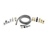Connects the pull-out faucet spray head to the kitchen faucet; this complete kit includes 2 adapters to choose from that connects to the faucet sprayer and 8 adapters to choose from to connect the spray hose to your existing faucet base. Included faucet spray head adapters fit Delta pull-out faucet sprayers that have 5/8 inch – 18UNF female threads which includes many current Delta kitchen faucets. Also fits the Danco pull-out kitchen faucet spray head replacement model #’s 10408, 10409, and 10415 that have 1/2” NPSM male threads. Includes 8 adapters that allow for the sprayer hose to attach to your existing faucet base. Included Faucet base adapters fit Oak Brook Collection, Globe Union, Moen, Delta, and older faucet models of American Standard, Kohler, Pfister and Moen. We highly recommend using the Danco pull-out kitchen faucet head replacement sprayer when connecting this hose to your existing faucet base. Kink-resistant nylon braided faucet sprayer hose for kitchen pull-out spray heads features a 57 inch nylon braided, kink-resistant hose with a 3/8-Inch diameter connector. Includes (2) adapters to connect hose to Delta and Danco pull-out spray heads, (8) adapters to connect hose to the faucet base and other necessary washers and O-ring for easier installation. DOES NOT FIT KITCHEN SINK SIDE SPRAYER HEADS or PULL-DOWN SPRAY HEADS. DESIGNED FOR CONNECTING KITCHEN PULL-OUT FAUCET SPRAYER HEADS to Faucet base ONLY. Series Name N/A; Package Contents (1) spray hose, (12) adapters; Depth (Inches) 0.50; Brand/Model Compatibility Moen, Delta; Spray Head Material N/A; Spray Hose Material Vinyl; Manufacturer Color/Finish Grey; Width (Inches) 0.50; Spray Head Style Pull-out; Spray Head Finish N/A; Hose Length (Inches) 57; Type Spray hose; Height (Inches) 50.0; Model #10912 L30-25