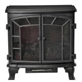 As the air starts to chill, you are going to need to keep your bedroom or office warm without taking up a lot of space with this electric fireplace from HOMCOM. The industrial design with double doors adds a vintage feel, while the adjustable heat, timer and brightness let you enjoy the ambiance of a fireplace during the summer and winter-months. The remote control allows you to adjust the settings without having to stop what you're doing or get up. Stay warm this winter with HOMCOM. Realistic LED flame effect with adjustable brightness settings. Designed for-year-round use, you can use it with or without heat. 750-Watt and 1500-Watt heating options for different rooms and weather. 8H timer allows you to decide the length of running time. Remote control makes it easy to adjust settings from a distance. Overheat protection makes it shut off if the internal temperate gets too high. Assembled Depth (in.) 25 in; Assembled Height (in.) 26.5 in; Assembled Width (in.) 12 in; Firebox Depth (in.) 25; Firebox Height (in.) 26.5; Firebox Width (in.) 12; Amperage (amps) 12.5 A; Area Heated (Sq. Ft.) 215 sq ft; Assembly Required Yes; Color Family Black; Color/Finish Black; Features Adjustable Thermostat, Automatic shut-off, Flame Works With or Without Heat, Thermostatic Control, Timer; Heat Output (BTU/hour) 5119.45; Included No Additional Items Included; Mount Type Freestanding; Number of Heat Settings 2; Power Connection Plug-In; Product Weight (lb.) 18.48 lb; Surround Material Metal; Total BTU 5119.45 Btu; Voltage (volts) 120 V; Wattage (watts) 1500 W; Model No. 1007076168 L30-87 (41)