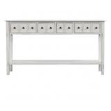 This lovely console table will effortlessly elevate any ensemble. The slim and simple silhouette helps this piece blend in with different settings, while the finish will liven up your look with sophisticated style. For added artful appeal, this console table also showcases tapered legs and ten metallic pulls with medallion accents. More than just stylish, this console table also features a lower shelf for storage, two small drawers, and two larger drawers. Classic accent table fits perfectly in any living room. What a stylish piece of console table set to elevate your living. Console table also features a lower shelf for storage. 2-small drawers and 2-larger drawers. 60 in. long table with 2-different size drawers and bottom. Overall dimension: 60 in. L x 11 in. W x 34 in. H. Product Depth (in.) 11 in; Product Height (in.) 34 in; Product Length (in.) 60 in; Assembly Required Assembly Required; Color Family White; Color/Finish White; Features Drawers, Solid Wood; Features Drawers, Solid Wood; Finish Family Pine; Frame Material Wood; Included No Additional Items Included; Product Weight (lb.) 51 lb; Shape Rectangle; Shape Rectangle; Style Rustic; Top Material Wood; Weight Capacity (lb.) 150 lb; Model No. IDF111888101 L30-75 (58)