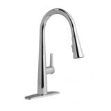 Allen + Roth LED pull-down kitchen faucet from the Bryon collection LED light on aerator is activated by water flow Reflective, chrome finish blends with most decor. Installs on a single hole or 3-hole sinks using the optional deck plate. Single-handle faucet design for quick and easy water control using a single lever. 2 Function pull-down spray wand offers at-your-fingertips water delivery. 1.8 Gallons per minute (GPM) flow rate helps conserve water. ADA-compliant lever handle for easier operation. A durable ceramic cartridge helps prevent drips. Mounting Location Deck-mount; Manufacturer Color/Finish Chrome; 3-Hole Sink Compatible yes; Spray and Stream yes; Handle(s) Included yes; Activation Method Handle; Fixture Color Family Chrome; Finish Technology N/A; Easy-Cleaning Nozzles yes; Number of Spray Settings 2; Compatible Adapter N/A; Spout Height (Inches) 9.68; Lowe's Exclusive yes; Commercial/Residential Commercial/Residential; Spray Technology N/A; Maximum Faucet Height (Inches) 17.72; Maximum Deck Thickness (Inches) 2; Swivel yes; Complies with Federal Lead Guidelines yes; Max Flow Rate 1.8 GPM (6.8 LPM); ADA Compliant yes; Number of Faucet Handles 1-handle; Faucet Type Pull-down; Handle Type Lever; Rust Resistant yes; Fixture Finish Polished; Style Modern/Contemporary; 1-Hole Sink Compatible yes; Deck Plate Included yes; Spout Reach (Inches) 10.65; Sub-Brand N/A; Docking Technology N/A; Type Kitchen faucet; Collection Name Bryton; Valve Type Ceramic disc valve; Model #21-K131HCP-AR L30-27