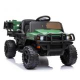 Feel the power: our off-road kid's car rides with elevated suspension at speeds of 1.8 mph to 3.25 mph, plus, we add even more fun with working LED headlights, illuminated dashboard gauges, and a realistic steering wheel that creates an experience of driving a fully loaded pickup truck. Maximum safety: this truck for kids has a smooth and exciting ride with extra-wide tires, seat belts, lockable doors, and suspension design for maximum safety while your child cruises, the kid's electric car starts at low speed, which allows your child to timely respond to unexpected situations. Child-driven or remote control: a child can drive the ride-on car, commanding the steering and 2-speed settings just like the real thing, or, you can take control of the toy with the remote control to safely guide it while the young 1 enjoys a hands-free experience the remote is equipped with the same forwarding/reverse controls, steering operations, and 2-speed selections. Endless fun: your children can enjoy music while cruising the neighborhood in their new kid's truck we made sure to include some pre-installed music, but they can jam out to their own tunes thanks to the USB and MP3 inputs, as well as the installed radio with ample storage space in the back and a shovel, there are endless options for fun. Tough style and quality materials: this kid's car has metal and PP combined to offer stability and durability for your kids and your peace of mind wear-resistant polypropylene tires mean you don't have to manage air pressure, while still giving your child the ride of their lives. Product Height (in.) 25.5; Product Length (in.) 47.25; Product Width (in.) 26.5; Tire/wheel size (in.) 12; Assembly Required Yes; Color Family Greens; Product Weight (lb.) 38.9; Recommended Age Range (years) 8; Type Car; Model #370-141V80