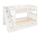 **INCOMPLETE** Harper & Bright Designs Full Over Full Bunk Bed with Stairs, Wooden Bunk Bed with Storage Drawers, for Kids Teens Adults - White (166)