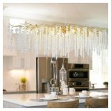 (Lot 13) TMAFON L63 Large Crystal Chandeliers for Dining Room - Modern Branch Pendant Light with Crystals, Rectangle Hanging Lights Fixtures for Kitchen Island, Living Room, 15 X G9