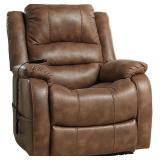 (Lot 138) Signature Design by Ashley Yandel Faux Leather Electric Power Lift Recliner for Elderly, Brown